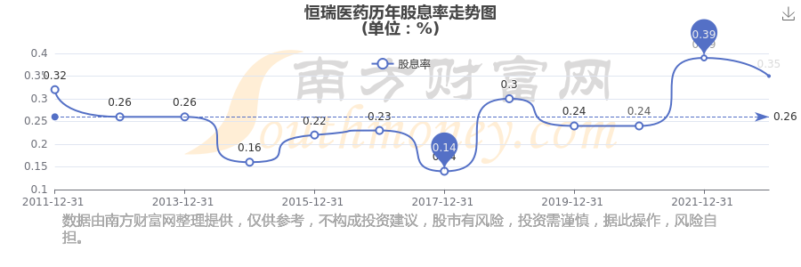 恒瑞醫(yī)藥歷年股息率走勢(shì)如下圖: