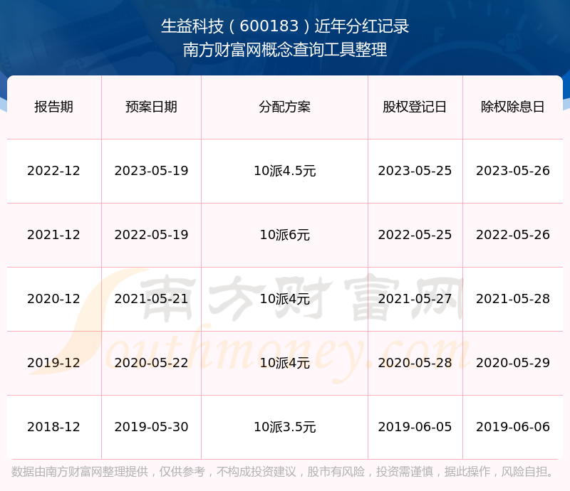 生益科技最新一次公布的分紅方案:10派4.5元。