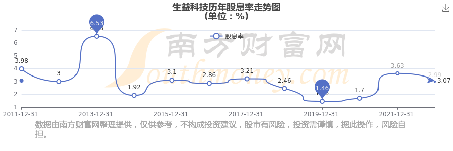 生益科技?xì)v年股息率走勢(shì)如下圖: