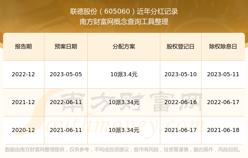 聯(lián)德股份最新一次公布的分紅方案:10派3.4元。