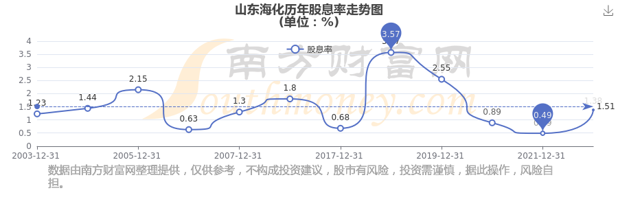 山東海化最新一次公布的分紅方案為10派1元。本次權(quán)益分派股權(quán)登記日為2023年5月11日,除權(quán)除息日為2023年5月12日,派息日為2023年5月12日。