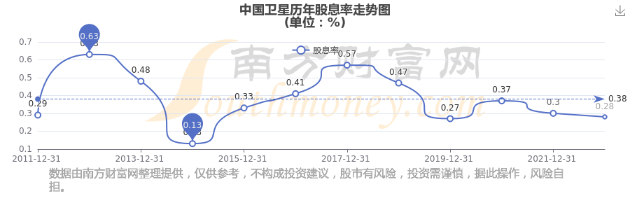 中國衛(wèi)星歷年股息率走勢如下圖: