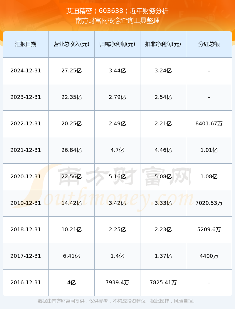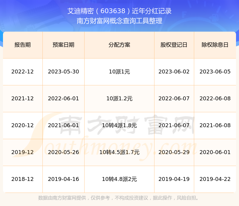 艾迪精密歷年分紅派息情況如下表所示: