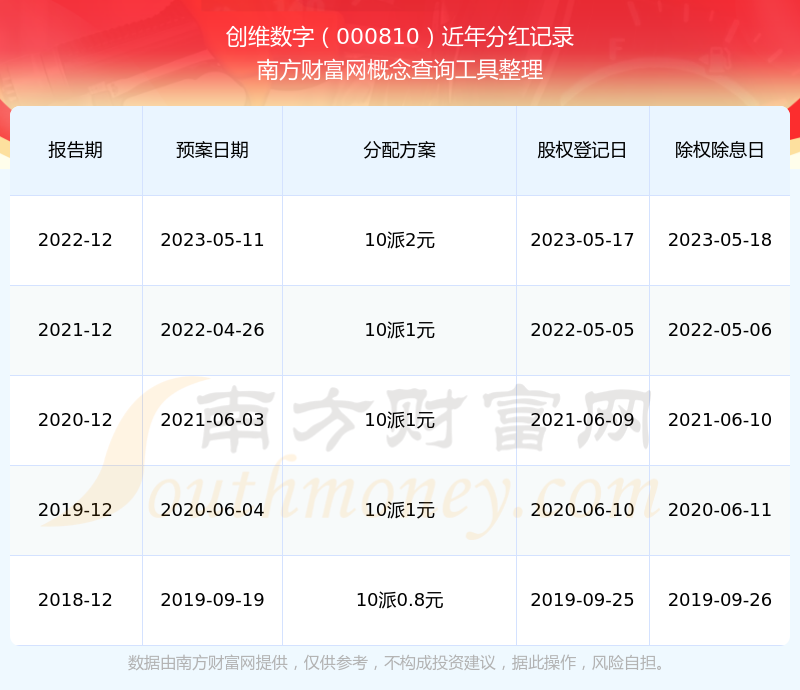 創(chuàng)維數(shù)字最新一次公布的分紅方案:10派2元。