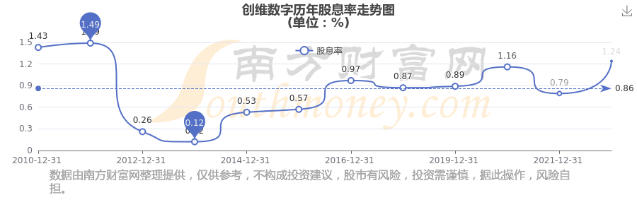 創(chuàng)維數(shù)字歷年股息率走勢如下圖:
