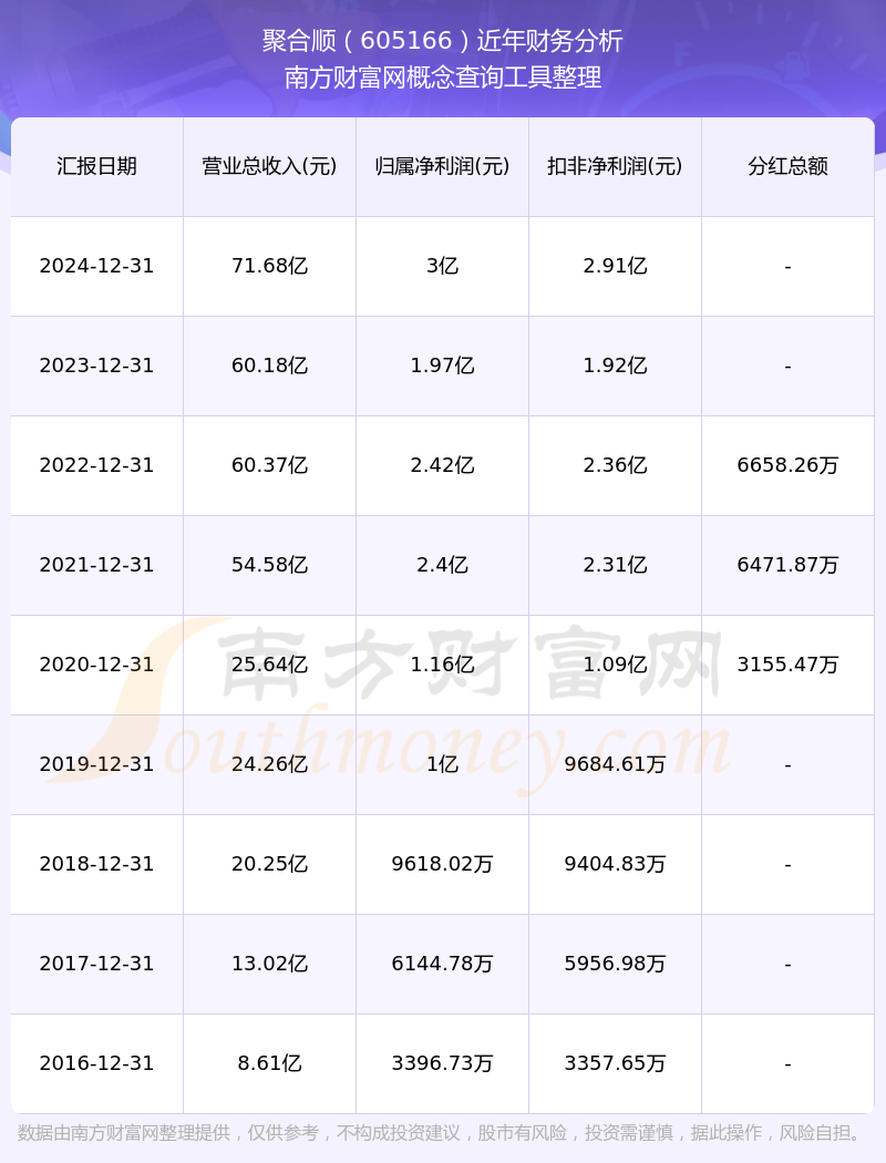 聚合順公司2024年實(shí)現(xiàn)營業(yè)收入71.68億元,同比增長19.11%;凈利潤3億元,同比增長52.66%;毛利率8.06%。