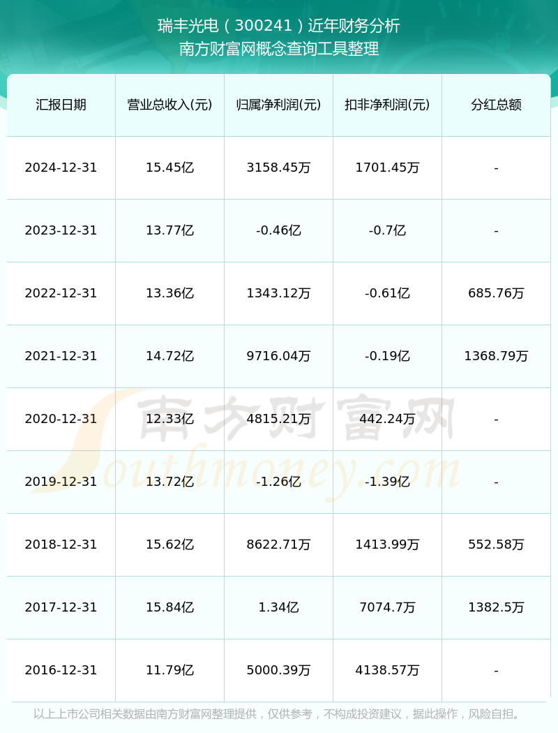 瑞豐光電2024年總營收15.45億,同比增長12.17%;凈利潤3158.45萬,同比增長168.76%;銷售毛利率23.27%。