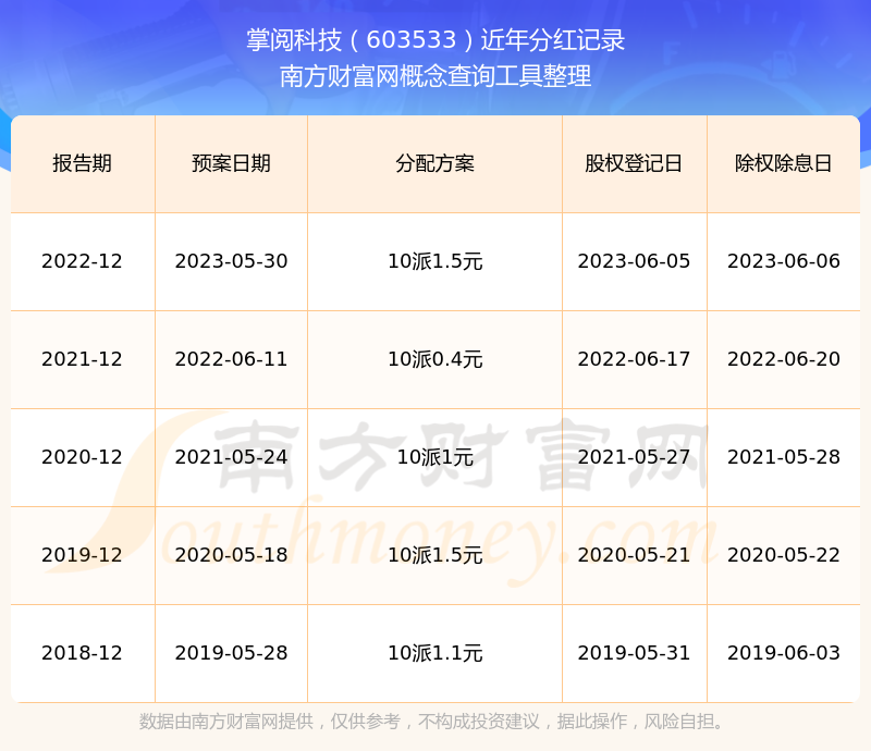 掌閱科技?xì)v年分紅派息情況如下表所示: