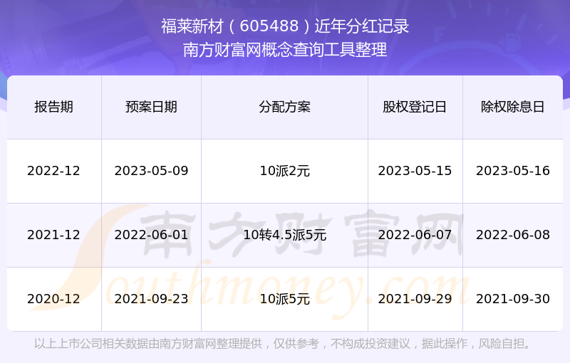 福萊新材最新一次公布的分紅方案:10派2元。