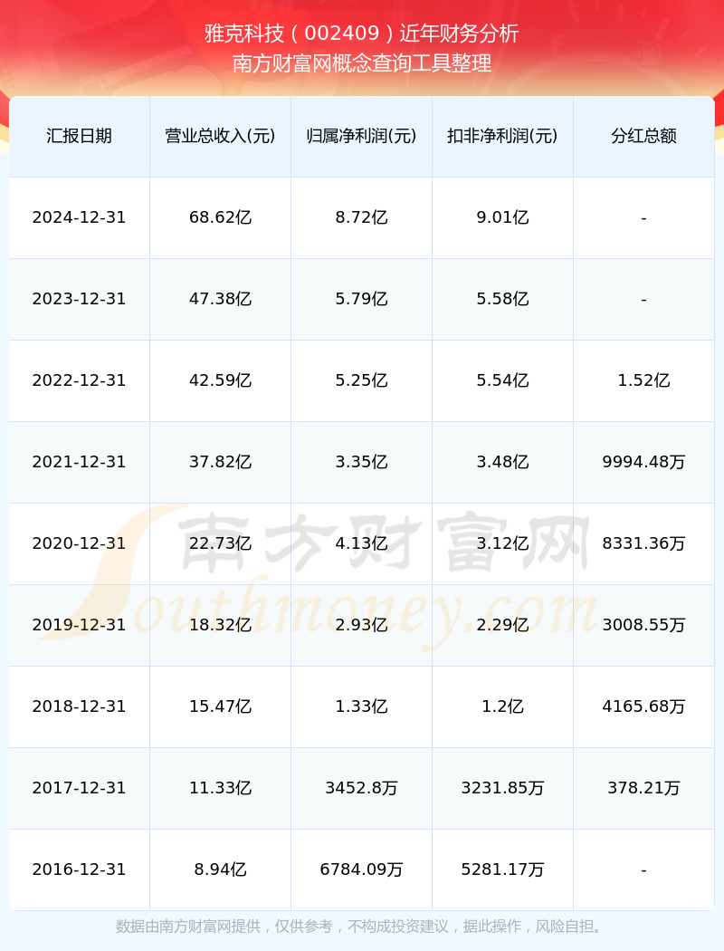 2024年報(bào)顯示,雅克科技實(shí)現(xiàn)營(yíng)收68.62億,同比增長(zhǎng)44.84%;凈利潤(rùn)8.72億,同比增長(zhǎng)50.41%;毛利率31.59%。