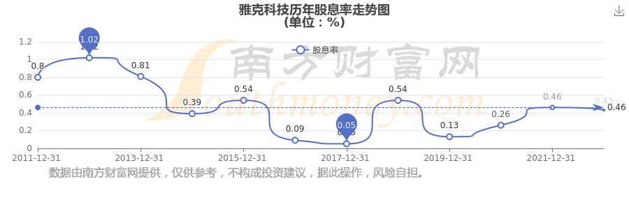 雅克科技?xì)v年股息率走勢(shì)如下圖:
