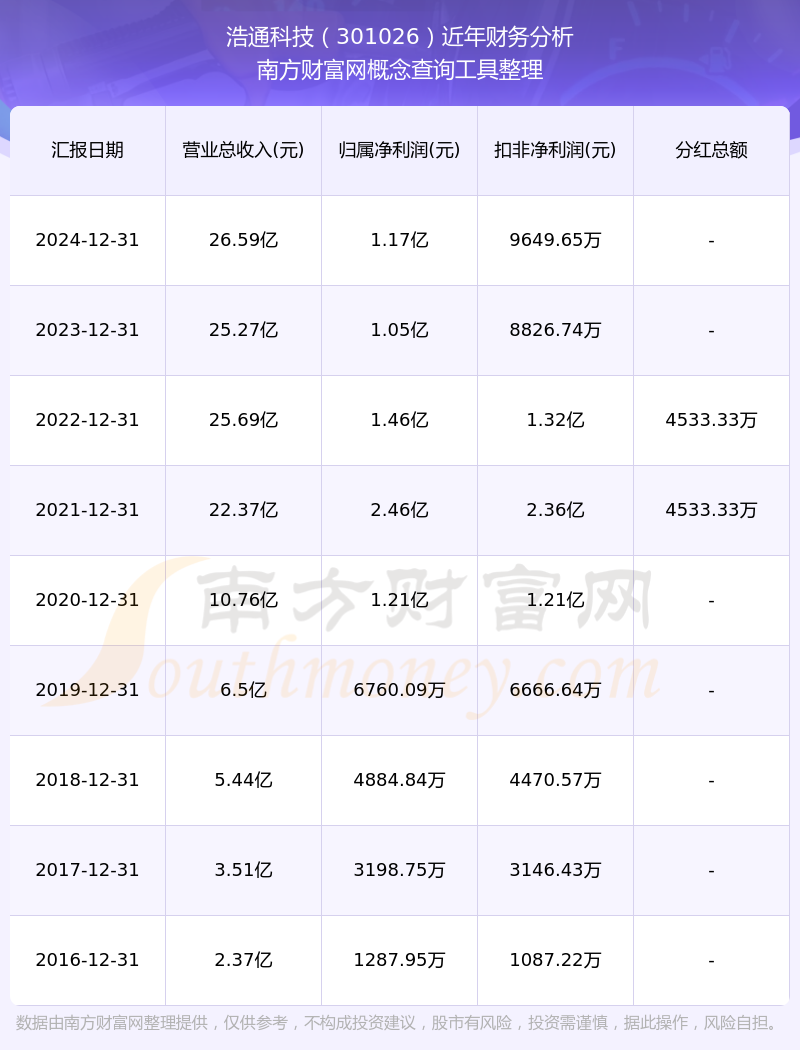 浩通科技歷年分紅派息情況如下表所示: