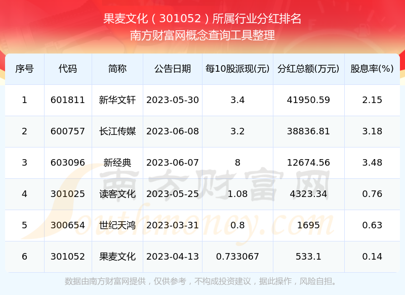 二、果麥文化301052行業(yè)分紅排名