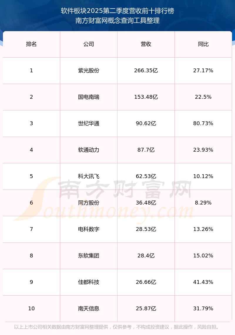 按照南方財(cái)富網(wǎng)概念查詢工具統(tǒng)計(jì),該股所屬板塊為軟件板塊,該板塊共有246只股票,寒武紀(jì)2025第二季度營(yíng)收在該板塊中排名為第246名,該板塊2025第二季度營(yíng)收排名前十的股票如下表: