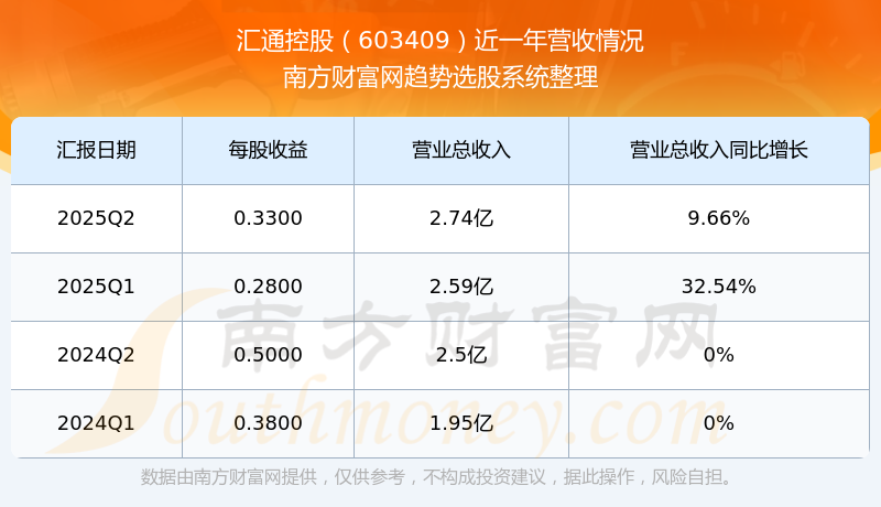 匯通控股(603409)披露2025年第二季度報告,報告期實現(xiàn)營收2.74億元,同比9.66%;歸母凈利潤4104.18萬元,同比-12.2%;扣非凈利潤3960.87萬元,同比-14.63%;基本每股收益0.33元。