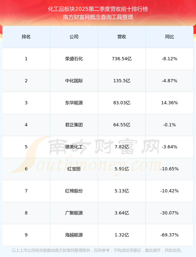 按照南方財(cái)富網(wǎng)概念查詢工具統(tǒng)計(jì),該股所屬板塊為化工品板塊,該板塊共有9只股票,云煤能源2025第二季度營(yíng)收在該板塊中排名為第9名,該板塊2025第二季度營(yíng)收排名前十的股票如下表: