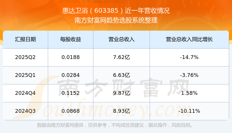 于2025年第二季度,惠達衛(wèi)浴披露了其業(yè)績表現,其中主營業(yè)務收入7.62億元,相較于去年同期-14.7%。此外,公司歸屬于母公司的凈利潤為715.76萬元,同比增長了-77.6%。在扣除所有非經常性損益后,凈利潤-2648.73萬元,同比增長-271.6%。