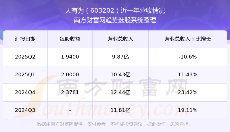 天有為2025年第二季度顯示,公司主營收入9.87億元,同比-10.6%;歸母凈利潤2.86億元,同比-10.77%;扣非凈利潤2.83億元,同比-10.17%。