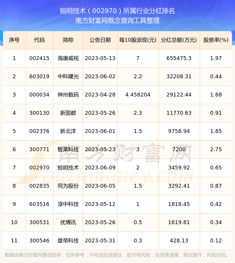 二、銳明技術(shù)002970行業(yè)分紅排名