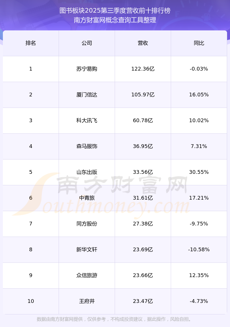 按照南方財(cái)富網(wǎng)概念查詢工具統(tǒng)計(jì),該股所屬板塊為圖書板塊,該板塊共有62只股票,內(nèi)蒙新華2025第三季度營收在該板塊中排名為第31名,該板塊2025第三季度營收排名前十的股票如下表: