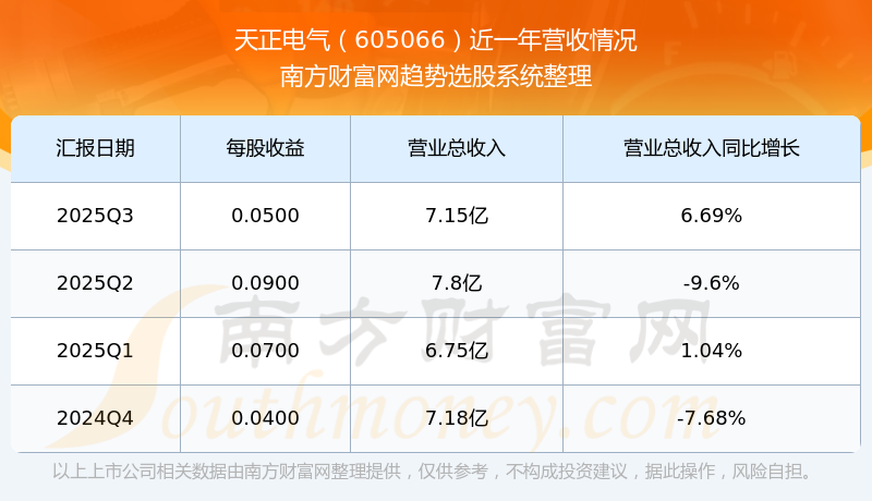 天正電氣發(fā)布2025年第三季度財(cái)報(bào)。實(shí)現(xiàn)總營(yíng)收7.15億元,同比增長(zhǎng)6.69%;扣非凈利潤(rùn)同比增長(zhǎng)-44.87%至1979.8萬(wàn)元。
