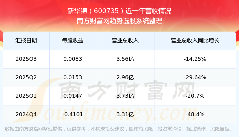 新華錦2025年第三季度公司實(shí)現(xiàn)營業(yè)收入3.56億元,同比-14.25%;歸母凈利潤357.32萬元,同比-82.85%。