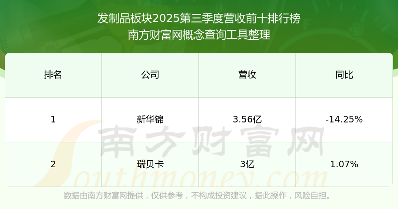 按照南方財(cái)富網(wǎng)概念查詢工具統(tǒng)計(jì),該股所屬板塊為發(fā)制品板塊,該板塊共有2只股票,新華錦2025第三季度營收在該板塊中排名為第1名,該板塊2025第三季度營收排名前十的股票如下表: