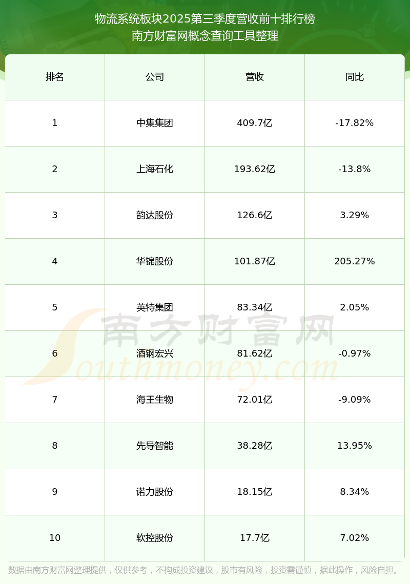 按照南方財富網(wǎng)概念查詢工具統(tǒng)計,該股所屬板塊為物流系統(tǒng)板塊,該板塊共有33只股票,科捷智能2025第三季度營收在該板塊中排名為第33名,該板塊2025第三季度營收排名前十的股票如下表: