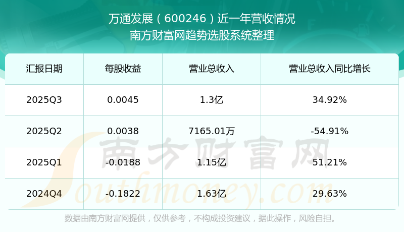 萬通發(fā)展(600246)披露2025年第三季度報(bào)告,報(bào)告期實(shí)現(xiàn)營收1.3億元,同比34.92%;歸母凈利潤824.09萬元,同比122.33%;扣非凈利潤-5096.32萬元,同比-4.71%。