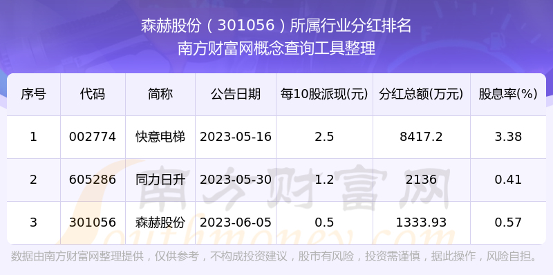 二、森赫股份301056行業(yè)分紅排名