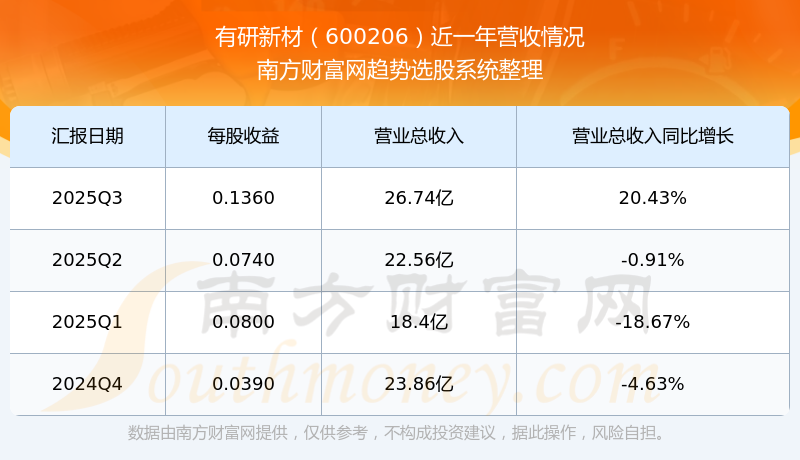 有研新材2025年第三季度顯示,公司主營收入26.74億元,同比20.43%;歸母凈利潤1.15億元,同比56.31%;扣非凈利潤4039.38萬元,同比-39.55%。