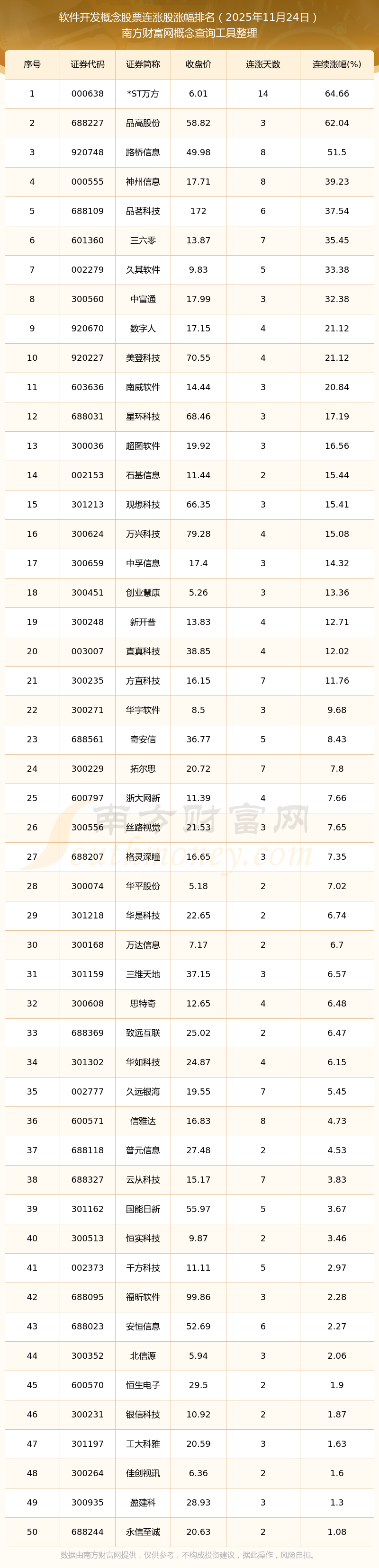 2025年11月24日軟件開發(fā)概念股票連漲股漲幅排名