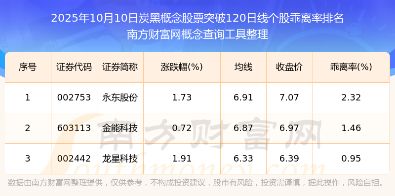 2025年10月10日炭黑概念股票突破120日線個(gè)股乖離率排名