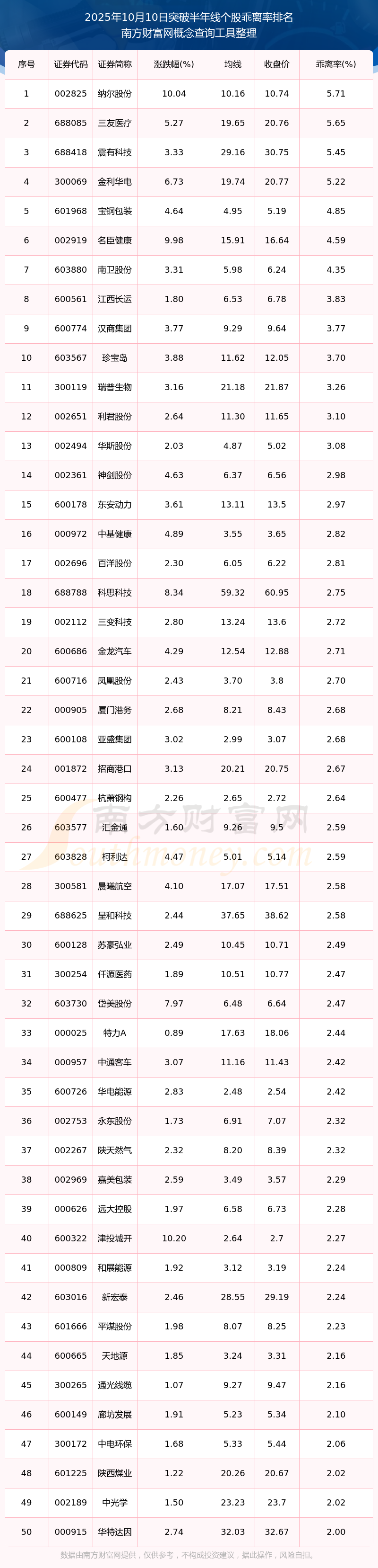 2025年10月10日突破120日線個(gè)股乖離率排名