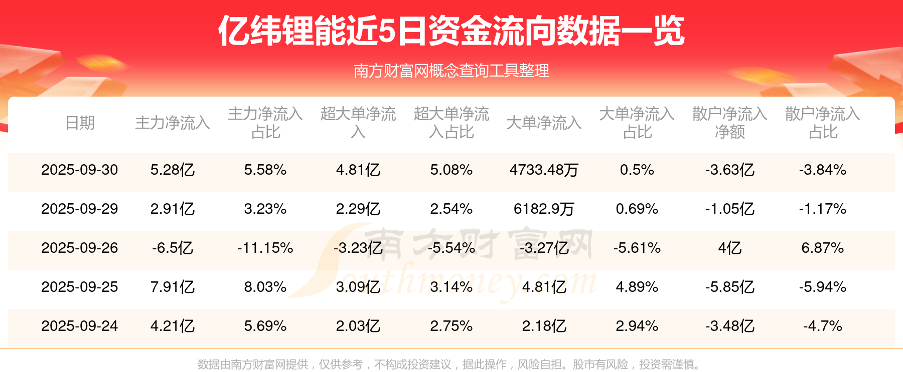 9月30日該股主力凈流入5.28億元,超大單凈流入4.81億元,大單凈流入4733.48萬(wàn)元,中單凈流出1.65億元,散戶凈流出3.63億元。