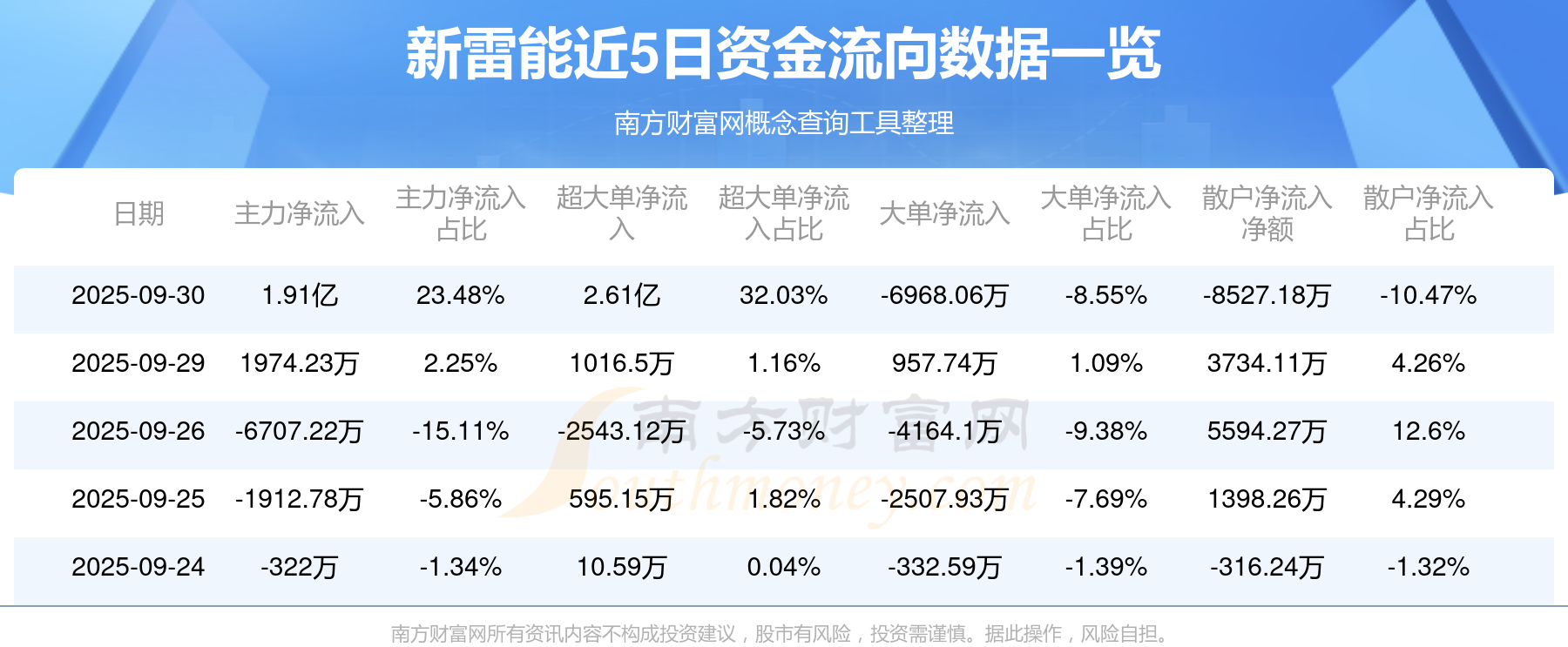 9月30日消息,新雷能資金凈流出1.91億元,超大單資金凈流入2.61億元,最新報22.440元,換手率8.25%,成交總金額8.15億元。