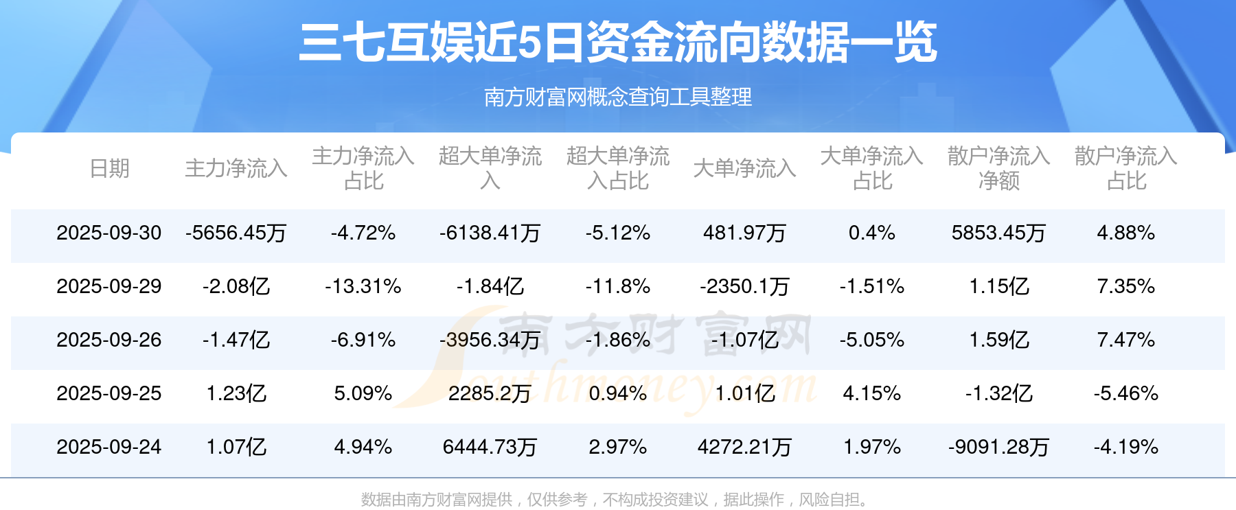9月30日消息,三七互娛9月30日主力資金凈流出5656.45萬元,超大單資金凈流出6138.41萬元,大單資金凈流入481.97萬元,散戶資金凈流入5853.45萬元。