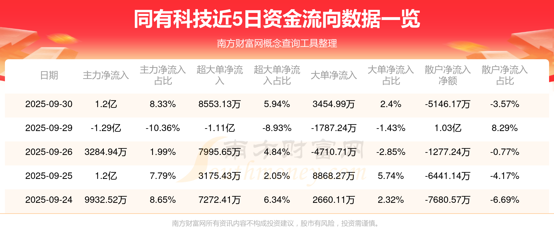 9月30日消息,同有科技主力資金凈流入1.2億元,超大單資金凈流入8553.13萬元,散戶資金凈流出5146.17萬元。