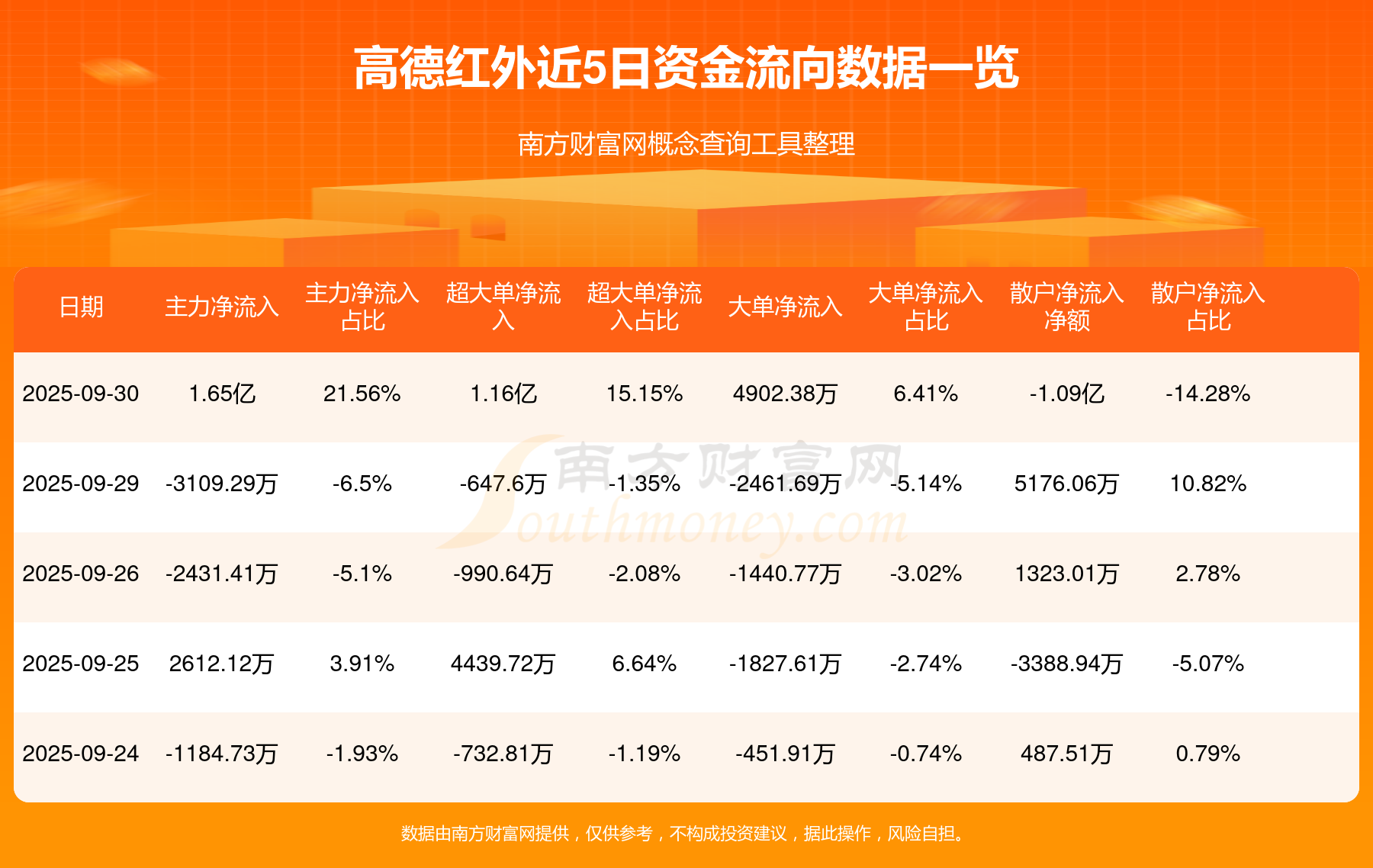 資金流向數(shù)據(jù)方面,9月30日主力資金凈流流入1.65億元,超大單資金凈流入1.16億元,大單資金凈流入4902.38萬元,散戶資金凈流出1.09億元。