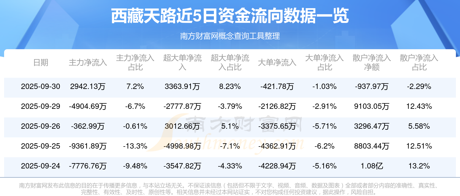 9月30日消息,西藏天路9月30日主力凈流入2942.13萬(wàn)元,超大單凈流入3363.91萬(wàn)元,大單凈流出421.78萬(wàn)元,散戶凈流出937.97萬(wàn)元。