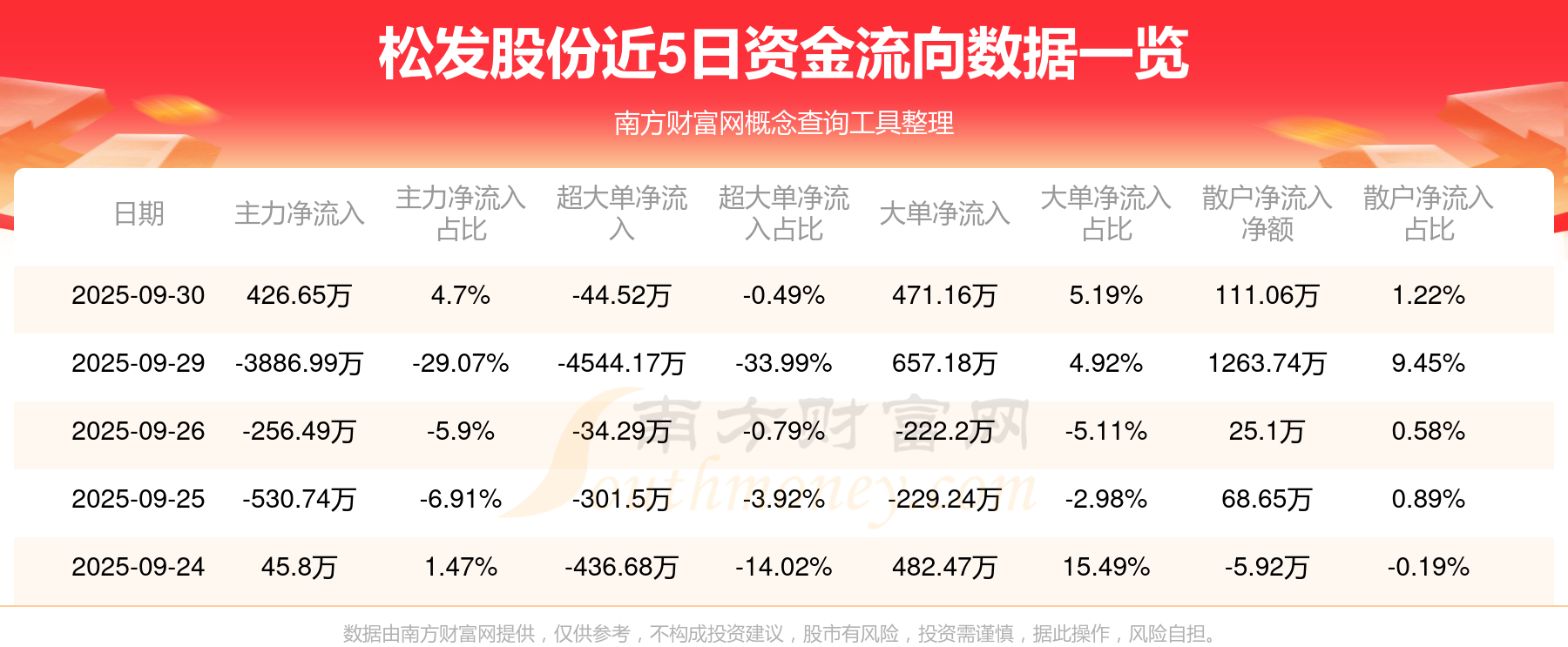 9月30日開盤最新消息,松發(fā)股份昨收46.82元,截至15點(diǎn),該股漲2.63%報48.050元 。