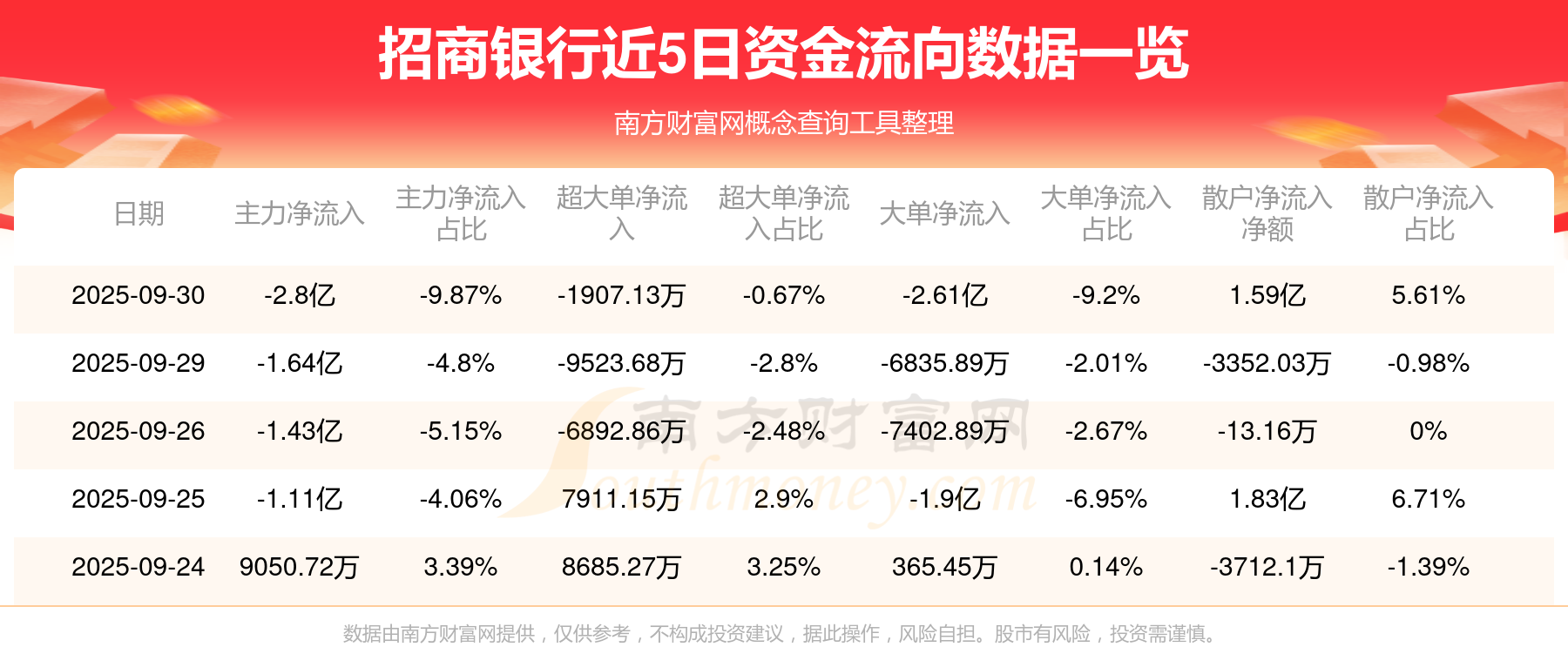 9月30日消息,招商銀行資金凈流出2.8億元,超大單資金凈流出1907.13萬元,換手率0.33%,成交金額27.28億元。