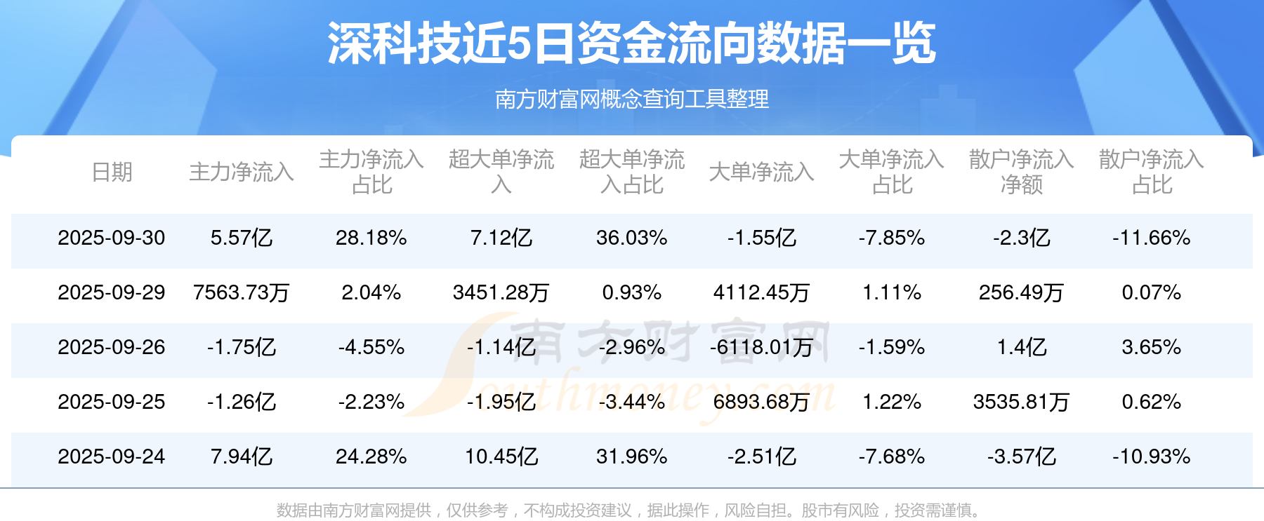 9月30日該股主力凈流入5.57億元,超大單凈流入7.12億元,大單凈流出1.55億元,中單凈流出3.26億元,散戶凈流出2.3億元。