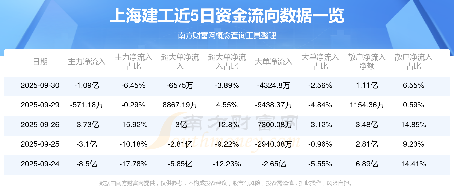 9月30日消息,上海建工9月30日主力資金凈流出1.09億元,超大單資金凈流出6575萬元,大單資金凈流出4324.8萬元,散戶資金凈流入1.11億元。