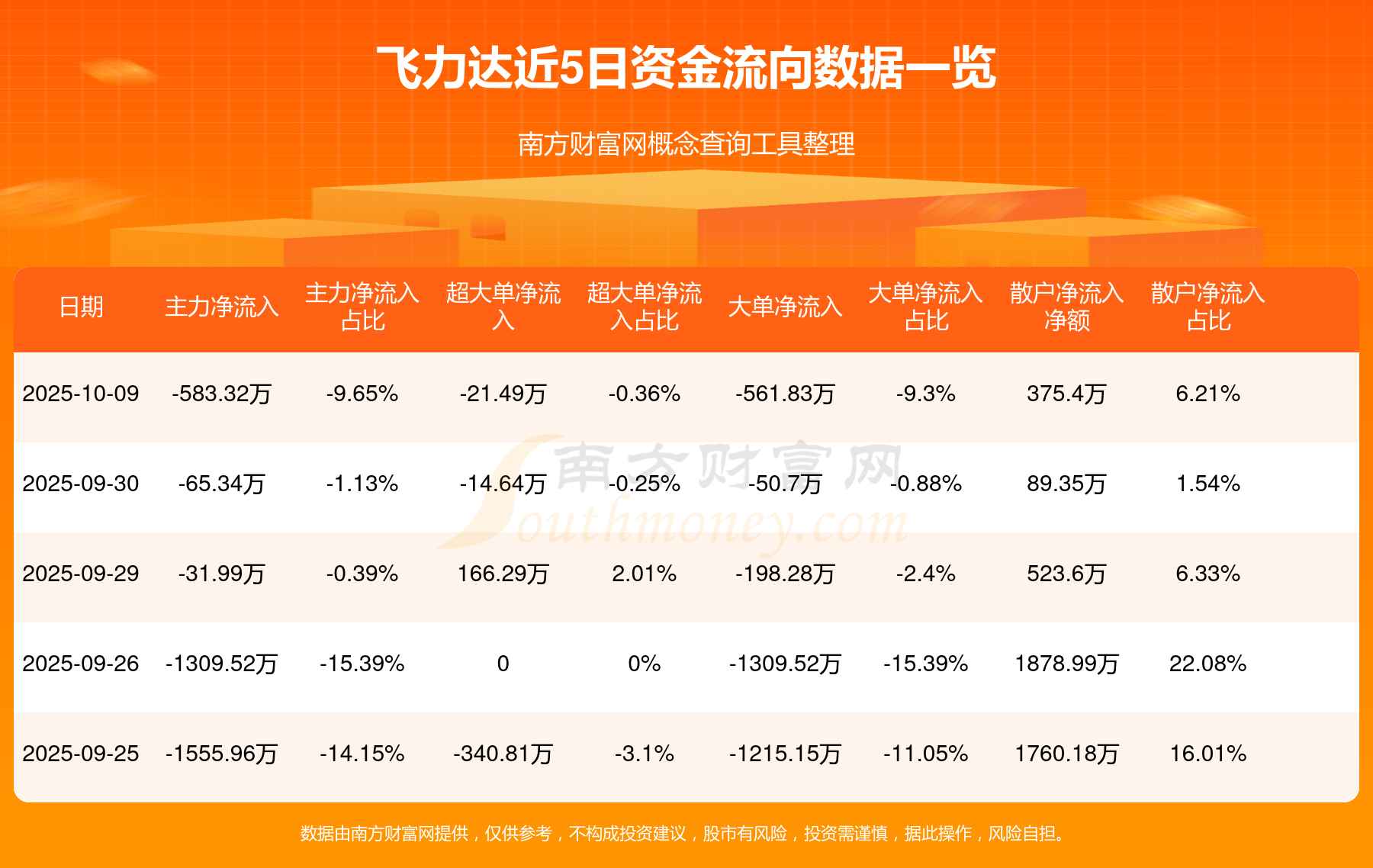 10月9日消息,飛力達(dá)10月9日主力凈流出583.32萬(wàn)元,超大單凈流出21.49萬(wàn)元,大單凈流出561.83萬(wàn)元,散戶(hù)凈流入375.4萬(wàn)元。