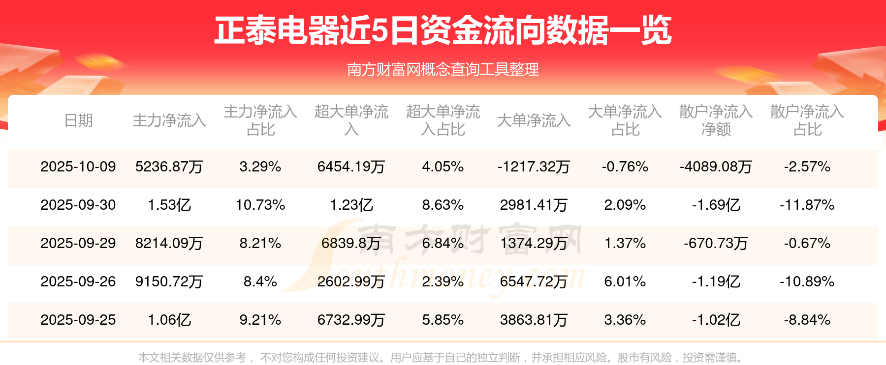 10月9日消息,正泰電器10月9日主力資金凈流入5236.87萬元,超大單資金凈流入6454.19萬元,大單資金凈流出1217.32萬元,散戶資金凈流出4089.08萬元。