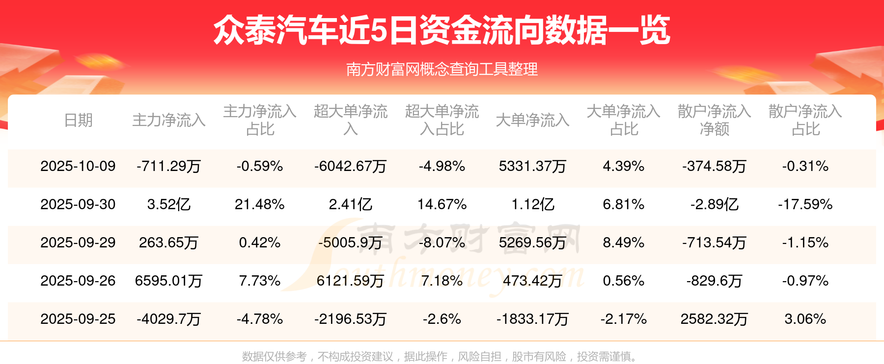資金流向數(shù)據(jù)方面,10月9日主力資金凈流流出711.29萬元,超大單資金凈流出6042.67萬元,大單資金凈流入5331.37萬元,散戶資金凈流出374.58萬元。