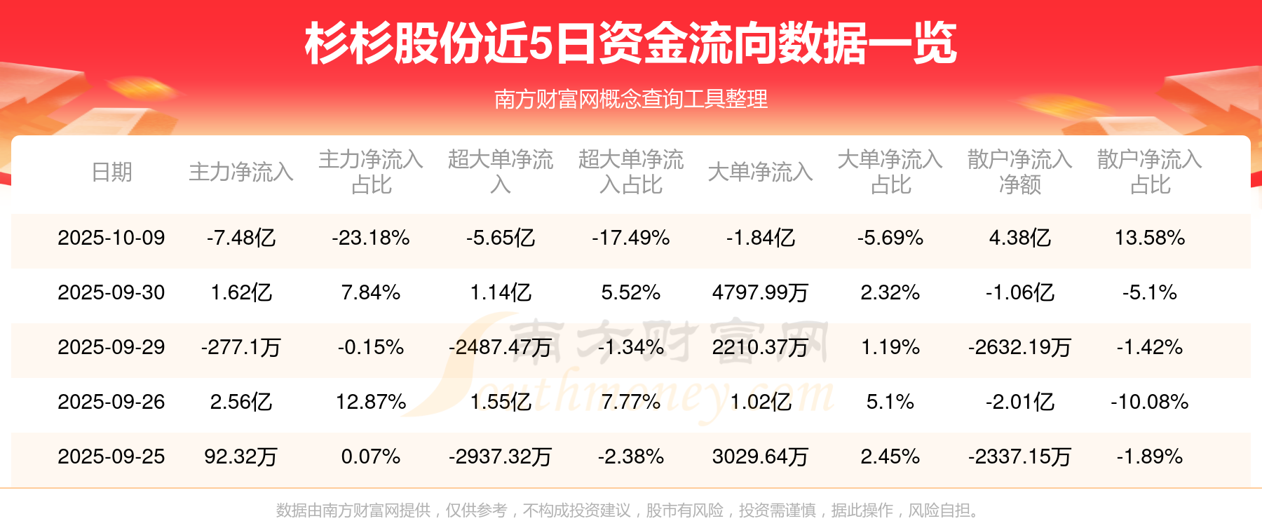 10月9日消息,杉杉股份10月9日主力凈流出7.48億元,超大單凈流出5.65億元,大單凈流出1.84億元,散戶凈流入4.38億元。