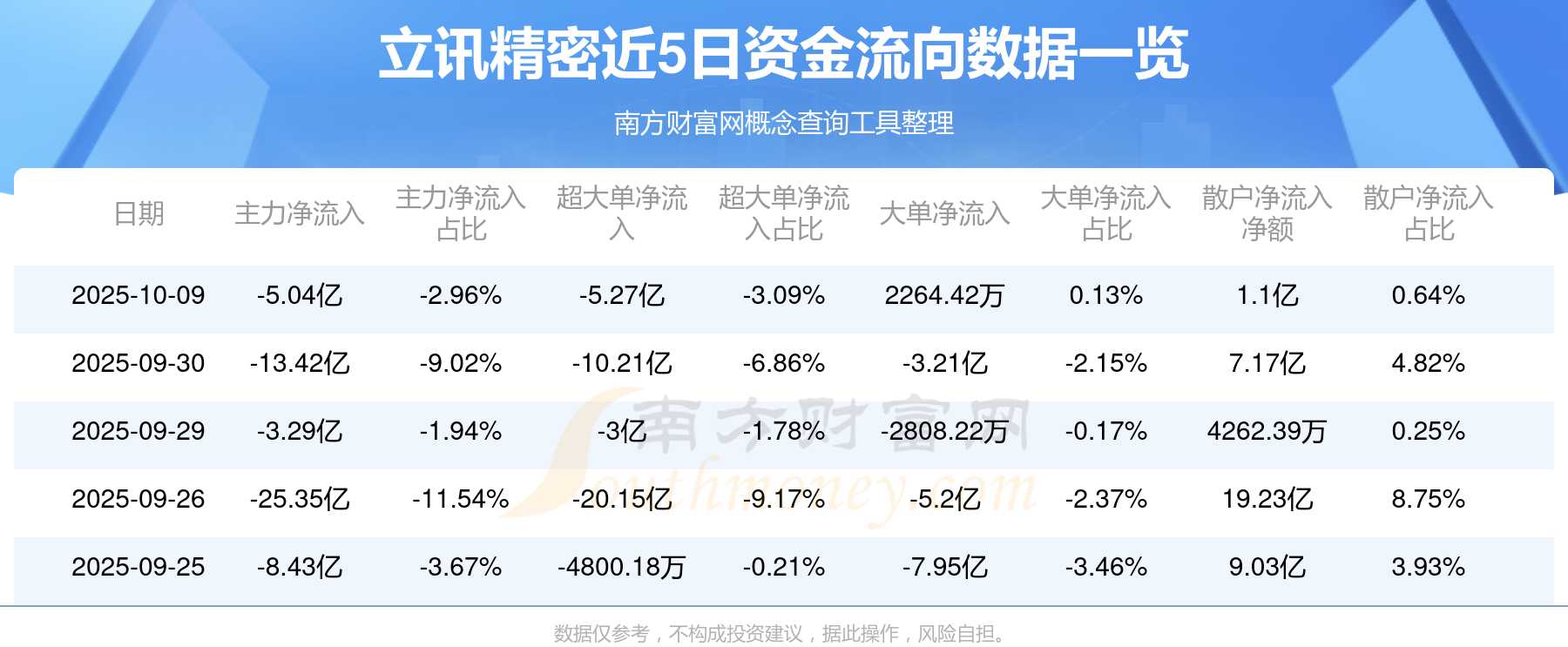 資金流向數(shù)據(jù)方面,10月9日主力資金凈流流出5.04億元,超大單資金凈流出5.27億元,大單資金凈流入2264.42萬元,散戶資金凈流入1.1億元。