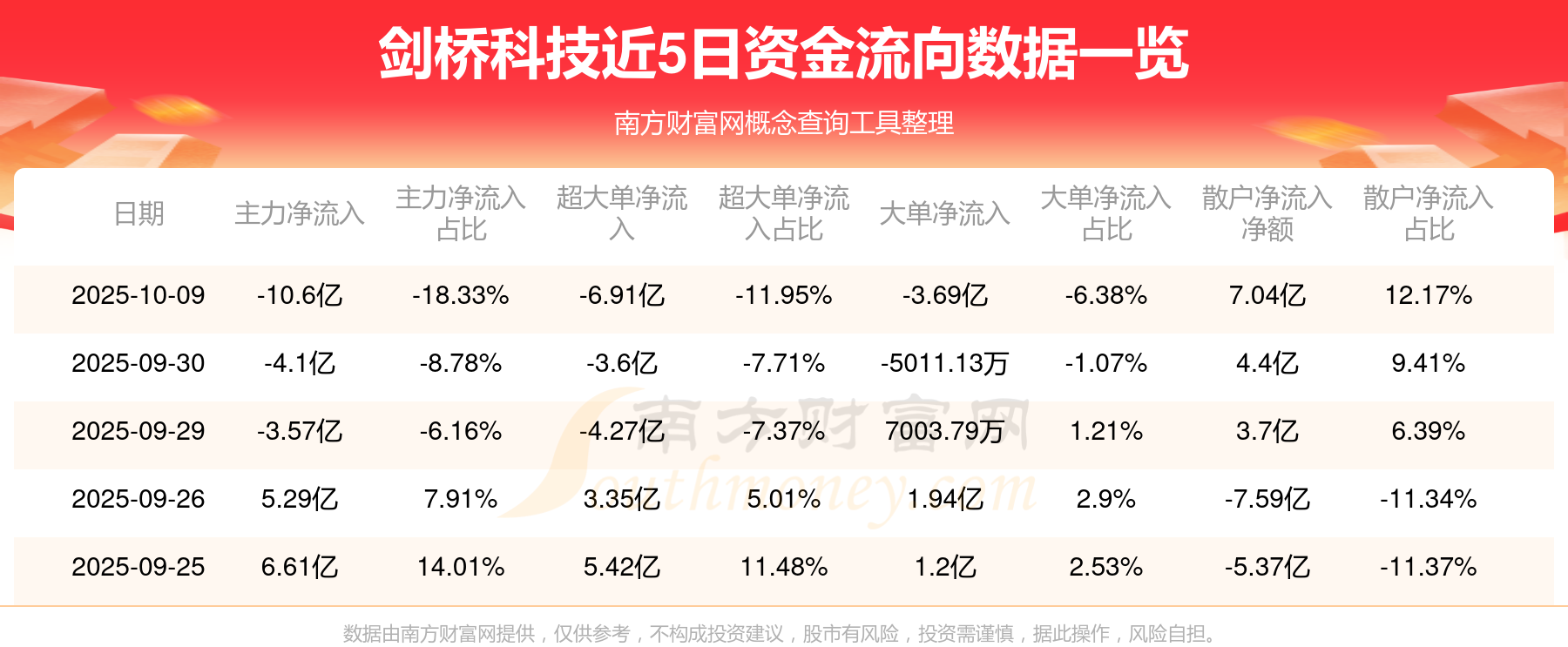 10月9日消息,劍橋科技10月9日主力資金凈流出10.6億元,超大單資金凈流出6.91億元,大單資金凈流出3.69億元,散戶資金凈流入7.04億元。